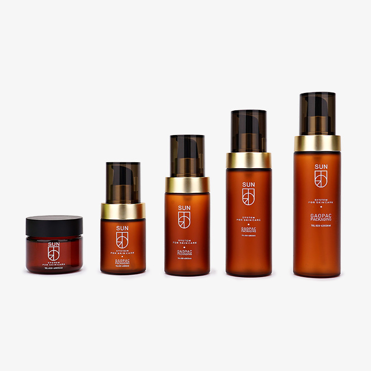 ชุดผลิตภัณฑ์ดูแลผิวหน้าทรงกระบอกสีเหลืองอำพันพกพาสะดวก ไม่เสียรูปง่าย ทนทานปากขวดเกลียว เทง่าย.วัสดุที่เป็นมิตรกับสิ่งแวดล้อมที่รองรับการรีไซเคิล